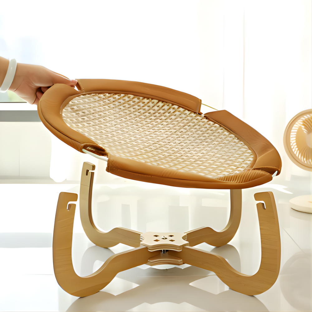 Constructed using a sturdy wooden base with a breathable mesh fabric surface, the bed is suitable for repeated indoor use and modern home environments. The detachable structure supports easy assembly and routine cleaning, aligning with elevated cat beds, breathable cat hammocks, and hanging cat lounge furniture commonly used for daily indoor comfort.