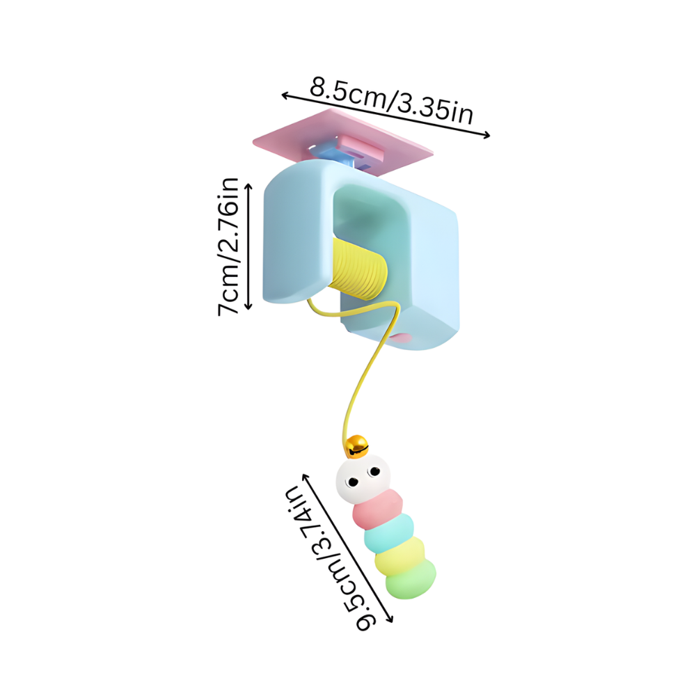 The wall mounted cat teaser toy is designed to create motion based interaction through a suspended dangling attachment. Installed on vertical surfaces, the compact housing unit secures the rope line while allowing the hanging toy to move freely during batting and jumping play. The elevated design encourages vertical engagement and active floor to air movement within indoor spaces.
