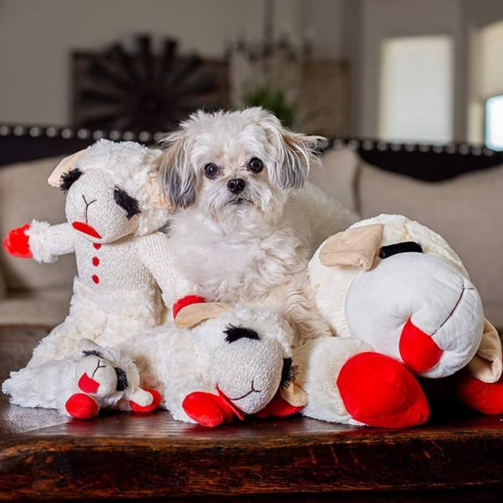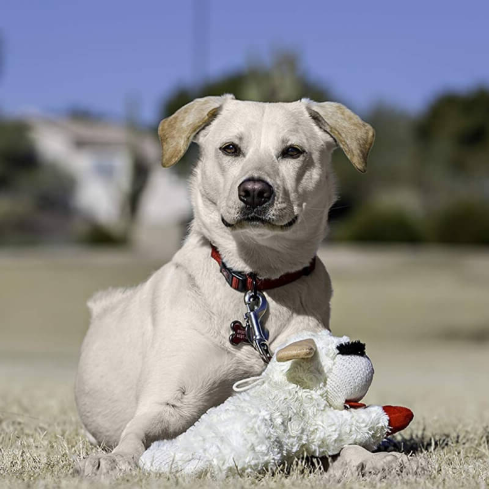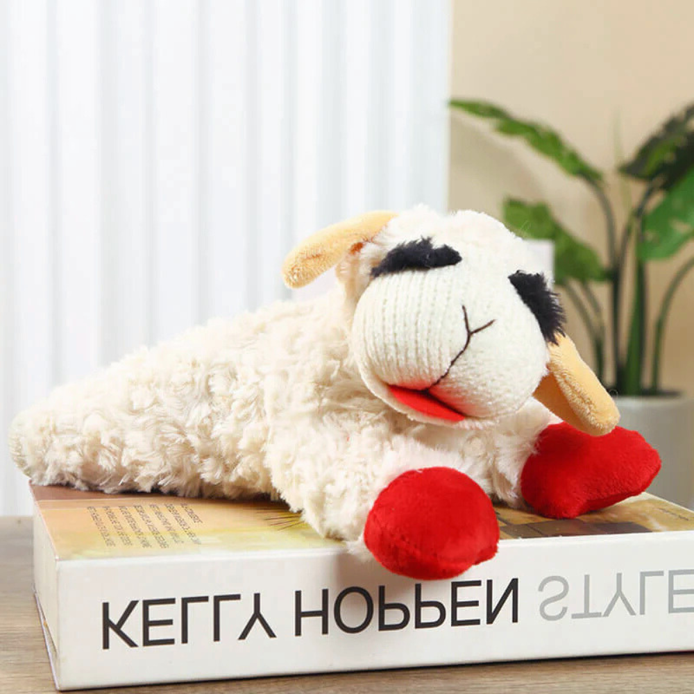 The CuddleLamb toy combines plush materials with a flexible form to support gentle play styles commonly enjoyed by small and medium dogs.