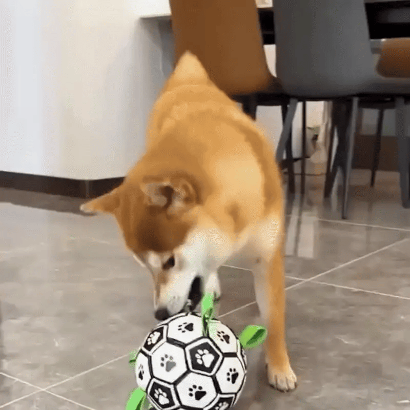 The pull handles on each side make this ball easy to grab from any angle, so dogs can tug, swing, and chase without the game slowing down.