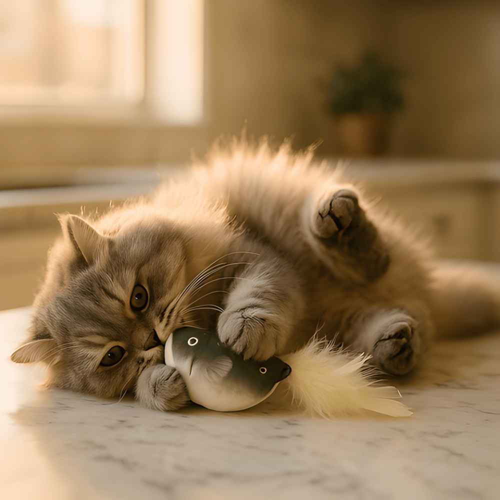 Infused with catnip, this toy supports stimulation and excitement while promoting healthy indoor activity. The feather teaser design keeps kittens engaged and helps reduce boredom by providing a fun target for paw play.